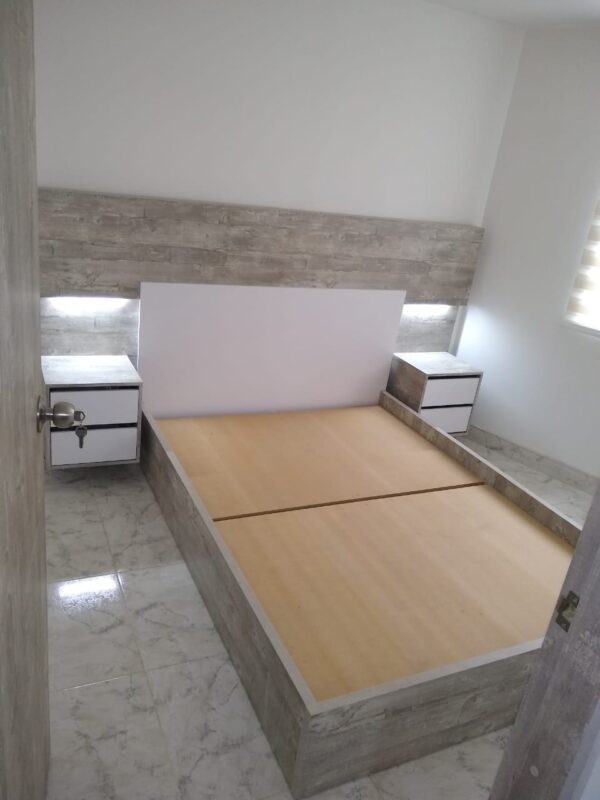 ¡Crea tu oasis personal con nuestra cama personalizada en melamina con mesas de noche empotradas! Disfruta de un diseño único que se adapta a tus necesidades y estilo de vida. Ahorra espacio en tu habitación con las mesas de noche integradas y disfruta de una cama cómoda y personalizada para un descanso reparador. ¡Haz de tu habitación el lugar perfecto para relajarte y recargar energías con nuestra cama personalizada en melamina con mesas de noche empotradas!